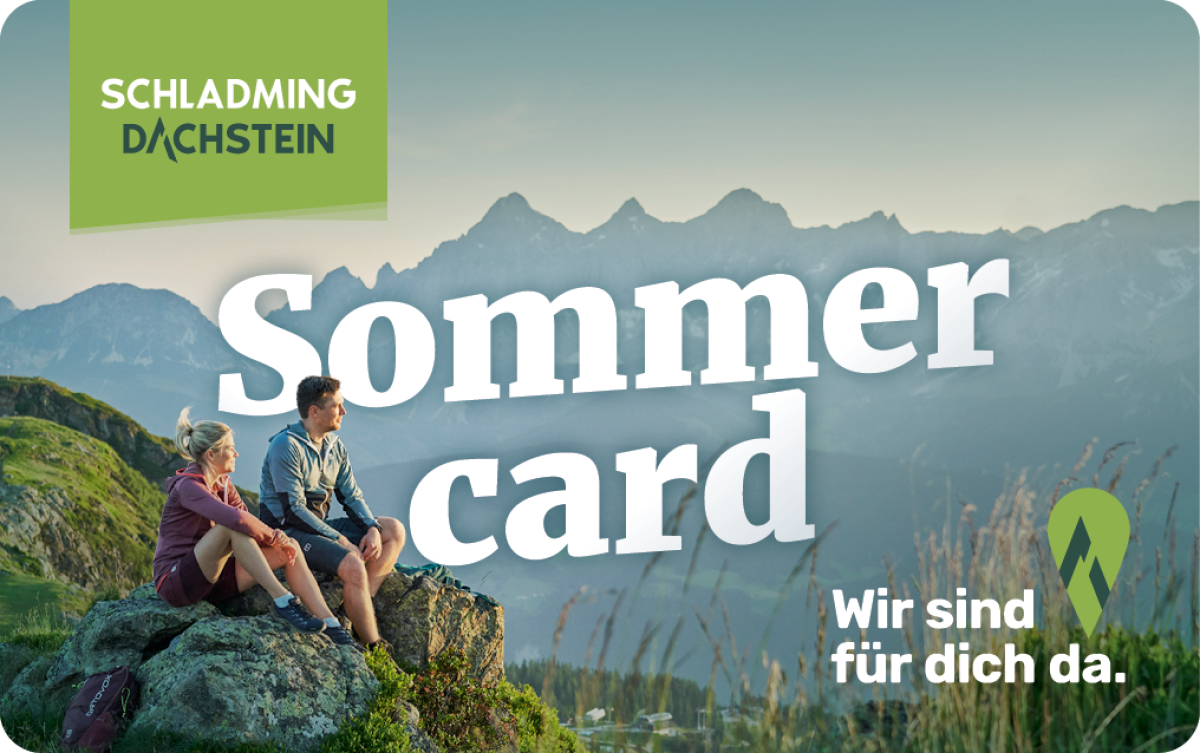 Die Sommercard öffnet alle Türen, um einen unvergesslichen Urlaub in der Region Schladming-Dachstein zu erleben. Sie bieten Ihnen den freien oder ermäßigten Zugang zu einem breiten Angebot an Freizeitmöglichkeiten – egal ob Erholung und Natur, Kunst und Kultur, spezielle Kinderangebote oder Fahrten mit den Sommerbergbahnen. Die inkludierten öffentlichen Verkehrsmittel sorgen dafür, dass man sich im Urlaub bequem und gleichzeitig nachhaltig fortbewegen kannst. Die Schladming-Dachstein Sommercard ist immer Mitte Mai bis Anfang November gültig.